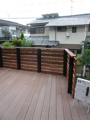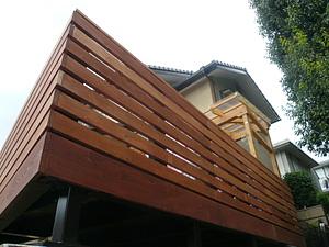 手摺外部は杉材にして、木のデッキとしながらも