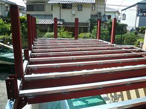 鉄骨と木と樹脂配合の床材デッキ