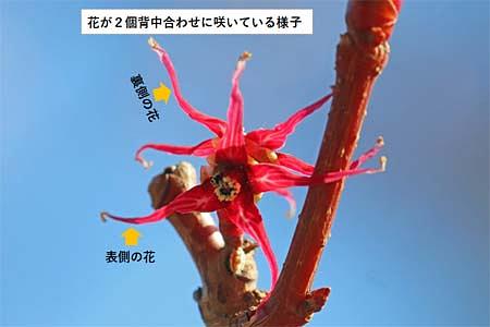 〇花が背中合わせに咲いている様子