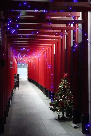 鳥居にクリスマスの飾りと・・・