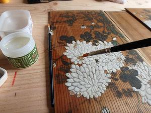 2021年09月27日 古民家再生 古建具 絵 shingo • 大津市 滋賀県の大津市、湖西地区を拠点に、滋賀県、京都府を中心に 古民家リノベーション、住宅建築、店舗設計建築、リフォーム、家具、什器製作など手がける一級建築士事務所。 詳細 リノベーション 古建具 古民家 板絵 お気に入りに追加 以前の障子に使われていた板絵を分解して洗浄。洗浄といっても柔らかい筆での少しづつの水洗いの繰りかえし・・・顔料の剥離をとめるために、デンプン糊を少し希薄してちょっとづつ塗り重ねていきます。古い板絵ですが、次の新しい建具に再生するための作業です。西川真悟 この記事を報告する 不適切な内容や規約違反を発見した場合はご報告ください