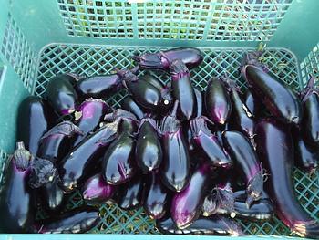 次はナスの収穫です。ナスは今年ほとんど雨が降らず、成長が遅れています。
