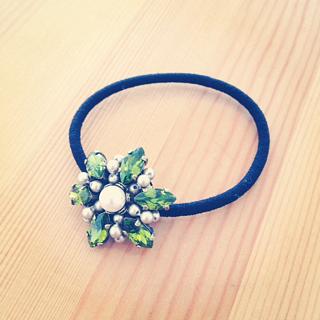 手作りヘアアクセ。石はスワロフスキーで。ペリドット色で良い感じ