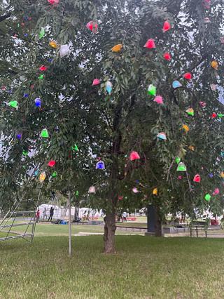 その後の上白石萌音 さん、ナオトインティライミさんの歌や、小林武史さんのピアノ演奏は、野外のパプリックビューイングで楽しみました。コーラスのお友達と、歌や、音響設備、バックのオーケストラ(京都市交響楽団)などの話を、あーだ、こーだ言いながら、ハンバーガーを食べながら楽しい時間を過ごしました。