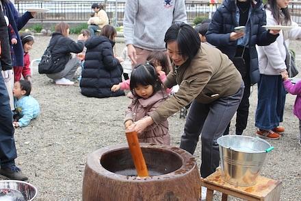 2025年03月21日 お餅つきをしました! やまびこ • 東近江市 詳細 やまびこ お気に入りに追加 今年も民生・児童委員さんにご協力いただいて、お餅つきをしました天気が雨予報でしたが、たくさんの方に来ていただき、美味しいお餅をつくことができましたまずは一晩水につけた餅米を1時間ほど蒸します臼にいれた餅米を杵でぐいぐいと潰してからぺったんこ〜ぺったんこ〜つき上がったお餅を、民生・児童委員さん、やまびこスタッフで手早く小さく切って盛り付けきな粉・黒胡麻・おろし大根のお餅が出来上がり〜つきたてのお餅は柔らかくて美味しいですね今回は黒胡麻のお餅が大好評でした この記事を報告する 不適切な内容や規約違反を発見した場合はご報告ください
