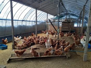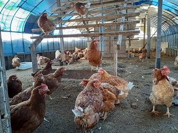 23代の鶏たちです。鶏小屋は床が発酵しているので15℃くらいあるので、雪に覆われていても鶏たちは元気です。