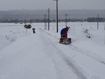 雪は降ったりやんだりしていたので、農道の除雪しているうちに暗くなってきました。