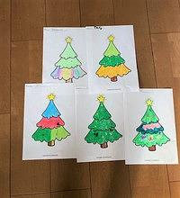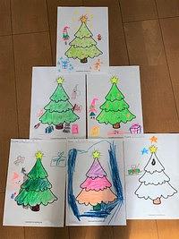 レッスンのときにそれぞれのクリスマスツリーを描いてもらいました