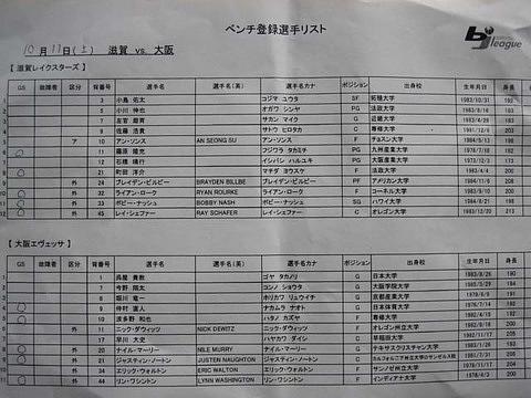 ここでは開幕戦の当日配布された、スターティングファイブが記されたメンバー表を。