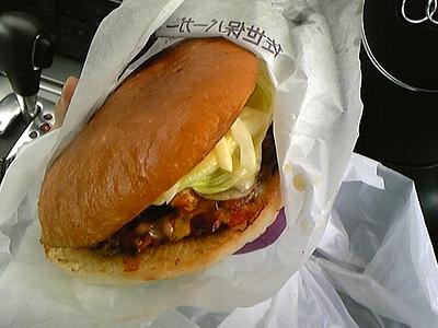 でも、お肉もジューシーだし、チーズ、ベーコン、目玉焼き、たっぷり野菜、ミニきゅうりのあっさりピクルスまるごと。