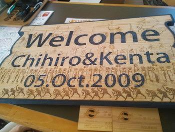 写真はそのひとつ、披露宴で使われた、木製のウェルカムボードです