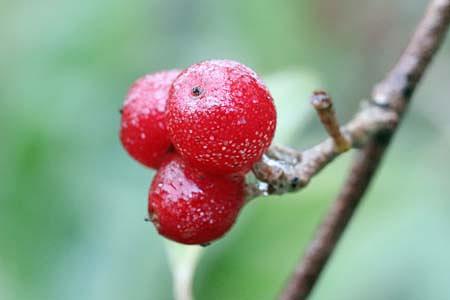 「この時期に食用にもなり実る果実」とは、アキグミとフユイチゴです。この2つも植物園で撮影したものです。