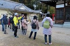 新宮神社で説明を受けました。 本殿は、国指定の重要文化財。蟇股(かえるまた)の内部彫刻は、「波と雲」と「牡丹(ぼたん)」、「桐文(きりもん)」で一見の価値があるとのこと。