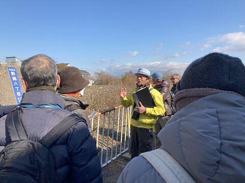 当日の朝の冷え込みにもかかわらず、予定通り9時には南草津駅に集合し、ガイドさんから南草津駅の成り立ちを含め話を聞きました。