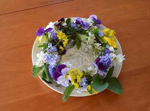 一度やってみたかった・・・庭の花ですみれのリース