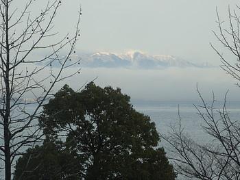 びわ湖ホールのお隣り、こちらも琵琶湖が一望のピアザ淡海(おうみ)から比良山の写真を撮りました。琵琶湖の向こうに見える比良山が雲の上に出ていて幻想的でした。日々姿を変える琵琶湖を一望できる仕事場。とっても贅沢です。