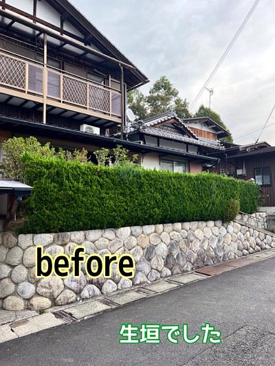 年齢と共に生垣の手入れが大変になってきたそうで、フェンスに取り替え