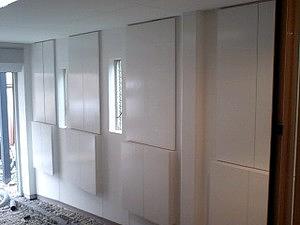 壁にはタイヤの収納と壁の厚みを利用した収納が天井まで造ってあります。