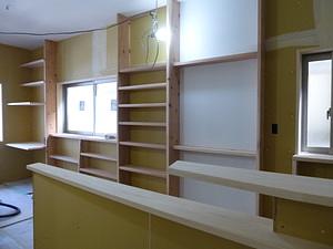 中皿の棚も、ちょうどよい奥行きの寸法で無駄なく、