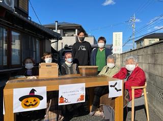 当日、急遽、近くのデイサービスさんからお声をいただき、おばあちゃまたちから、お菓子を配っていただけることになりました