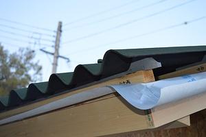 屋根材と木のあいだの隙間にケミカル面戸を挟んでいます