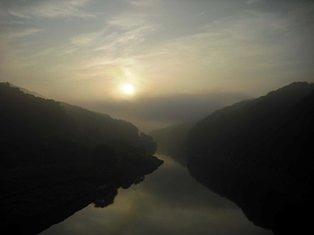 少し霧めいた大石の朝、厚い雲が昇陽の邪魔をする。