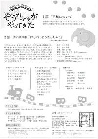 戦後、名古屋の東山動物園で生き残った「そう」をめぐる、実話をもとにした合唱構成劇。進行役は子ども演劇教室と演劇集団つばめがつとめ、演奏は今回特別に結成したピアノと3本の楽器によるぞうれっしゃカルテットと、総勢70名を超えるぞうれっしゃ合唱団が、迫力あるステージをお届けします。