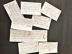 また次の卵にもチョコレートと次の卵のありかのメッセージカードがあり、また次の卵にも同じようにメッセージカードがあり、子どもたちはおおはしゃぎであちこち探します
