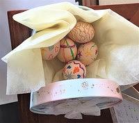 卵を見つけると、中にはチョコレートとメッセージカードが入っています