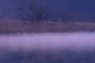 この状態で朝日が差し込んだところを撮りたいのですが、太陽が昇るといつも蒸気霧が薄くなってイメージとから遠ざかるのです・・・