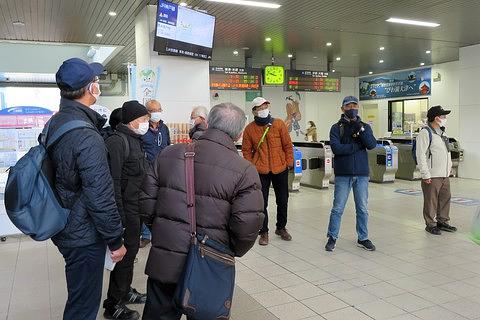 山本一男さんのガイドで散策が始まったと持ったら、大津駅に逆戻りして大津駅の歴史の解説。