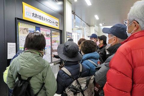 コース:JR大津駅魚中藤村商店露国皇太子遭難の地札ノ辻大津宿本陣跡犬塚の欅⇒川口公園(大津城中堀跡、川口関跡)⇒梅田雲浜寓居跡大津絵の道大津城本丸跡⇒昼食後解散 3㎞強