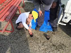 ベン先生の言う通りにside,side,side....up,down,up,down...circle,circleと言いながらポットの中の土に水をまいて