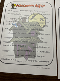 Spiderに単語を選んでもらい、お話の中の空欄にその単語を入れてお話を作ります