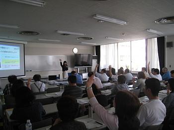 事務局 辻の講義は「環境ラベル」がテーマ。途中クイズも取り入れて、楽しく♪