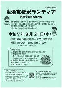 【8/21(木)】「生活支援ボランティア講座」開催のお知らせ
