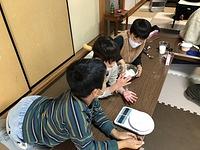 みんなで協力して材料を量って、滑らかになるまで混ぜます