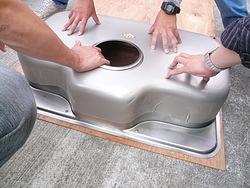 2008年05月30日 オリジナルキッチン shingo • 大津市 滋賀県の大津市、湖西地区を拠点に、滋賀県、京都府を中心に 古民家リノベーション、住宅建築、店舗設計建築、リフォーム、家具、什器製作など手がける一級建築士事務所。 詳細 現場日記 オーダーメイド オリジナルキッチン シンク お気に入りに追加 Y邸の注文していたシンクが届きましたこれだけ見てるとかなり、大きく見えますが天板は奥行き1200、御影石でつくるので・・・石屋さんにシンクの部分をカットしてもらいます。天板に穴を開ける準備、シンクの型取りをしました。にほんブログ村 住まいブログへにほんブログ村 住まいブログ 自然素材住宅へにほんブログ村 住まいブログ リフォームへ この記事を報告する 不適切な内容や規約違反を発見した場合はご報告ください