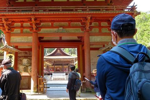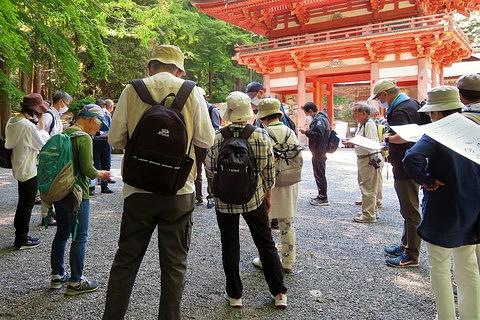 午後は滋賀県文化スポーツ部文化財保護課の清水先生で、日吉大社西本宮楼門前に集合して、授業が始まりました。