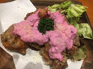 ピンクのタルタルソースの正体は、いちごクリームではなく、柴漬けだそう