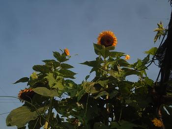 ヒマワリが朝日を浴びています。