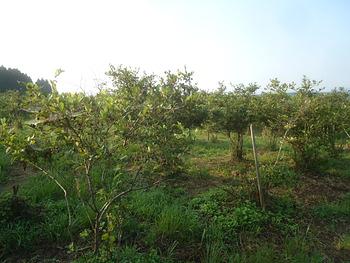 ブルーベリー畑にも朝日が差しています。