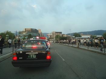 急いで帰りたいのですが、京阪三条駅付近は車がいっぱい。鴨川では納涼祭りのようで、人もいっぱいでした。