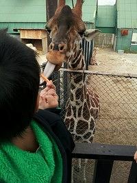 キリンには手を舐めまわされ、象には鼻についている泥を鼻息とともに吹きかけられましたが、楽しかったようです