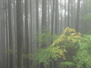 もちろん雲海は見られませんでしたが、少し色づいた樹木は美しく、大好きな霧中の紅葉が見られました。