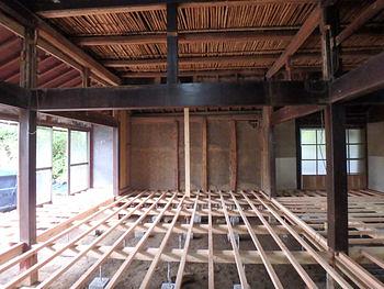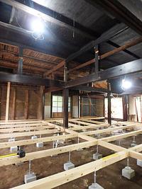 天井 床 をほぼ取り払い、床構造の状態まですすみました。