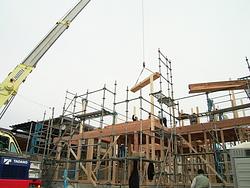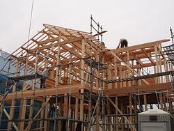 総勢10名の職人さんの連係で、家の骨組みが組み上げられていきます