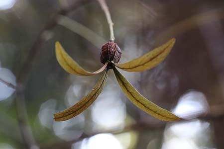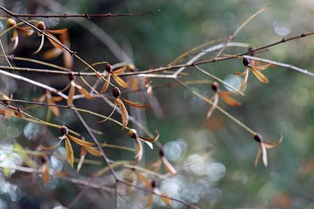 実が落下するときは実についた4枚の苞がプロペラの様にくるくると回り、遠くまで実を飛ばせて生育範囲を広げる作戦です。そのプロペラの付いた実が、飛び立る準備万端でテイクオフ寸前に見えました。強めの風が吹いたら飛んでいきそうでした。飛ぶ姿も見たいものですね!