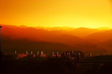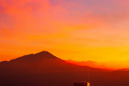 比叡山と東山の如意ヶ嶽近辺の朝焼けに包まれた姿です。