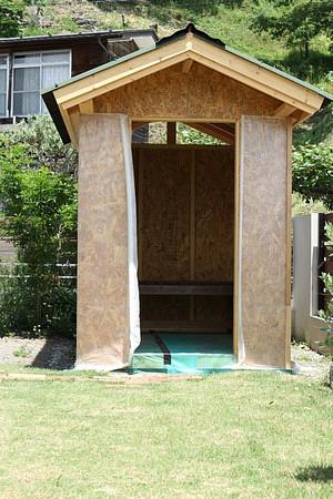 ガーデンシェッド作りの作業ですが、カベ貼りに入りました。